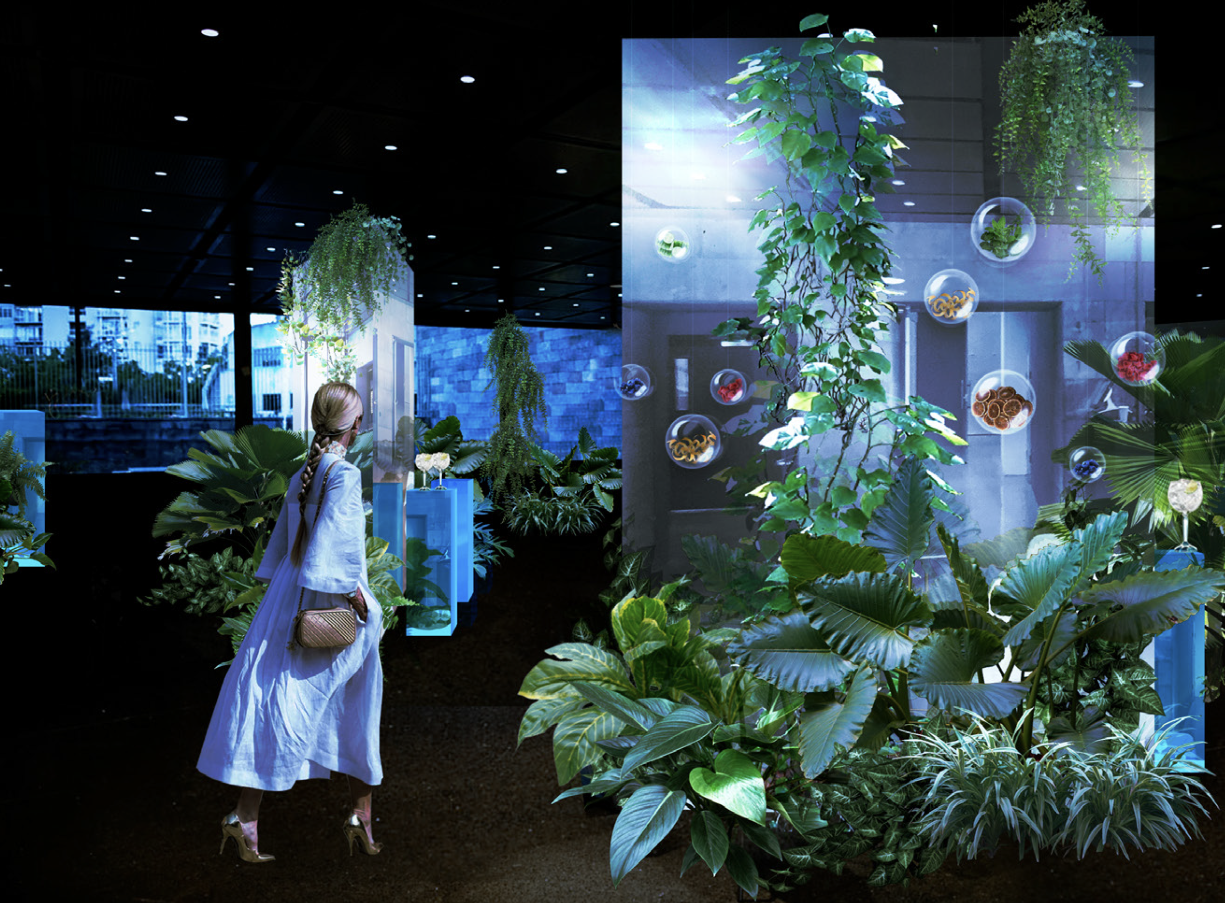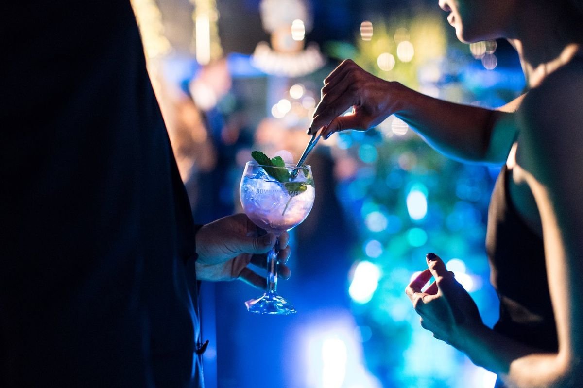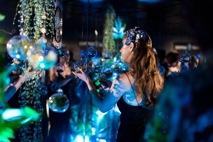 Beyond the mirror installation, guests moved through an immersive light room where costumed waitstaff served up Bombay Sapphire gin and tonics with floating garnishes and shucked oysters on a custom ice sculpture, encasing Amex Platinum cards. Of course we topped the oysters with custom blue algae pearls to match Amex branding. Wouldn’t you?